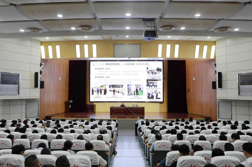 全體中層干部,全體學科專業負責人、本科專業負責人、本科實驗教學示范中心負責人、學生辦主任、教學秘書、評建辦專班成員、校教學督導,學工部、教務處、質控中心、教發中心全體人員,審核評估先進集體和先進個人,骨干教師代表等400余人參加會議。