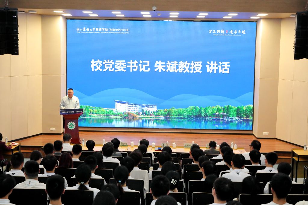 應義斌從專業知識與全面成長、選擇與堅持、績點與成長、不輸在起跑線與不輸在終點線、世俗意義上的成功與生命意義上的成功等辯證觀點出發,勉勵求真實驗班學生要“因為相信,所以看見”,行遠自邇、篤行不怠,堅定做一位踐行長期主義的奮斗者。他希望同學們在校時,要努力追求人性優秀基礎上的學業成功。在未來,要努力追求人性優秀基礎上的事業成功,真正做一位責任與擔當并肩、勵志與篤行并立、理性與情懷并重的有靈魂的卓越者。