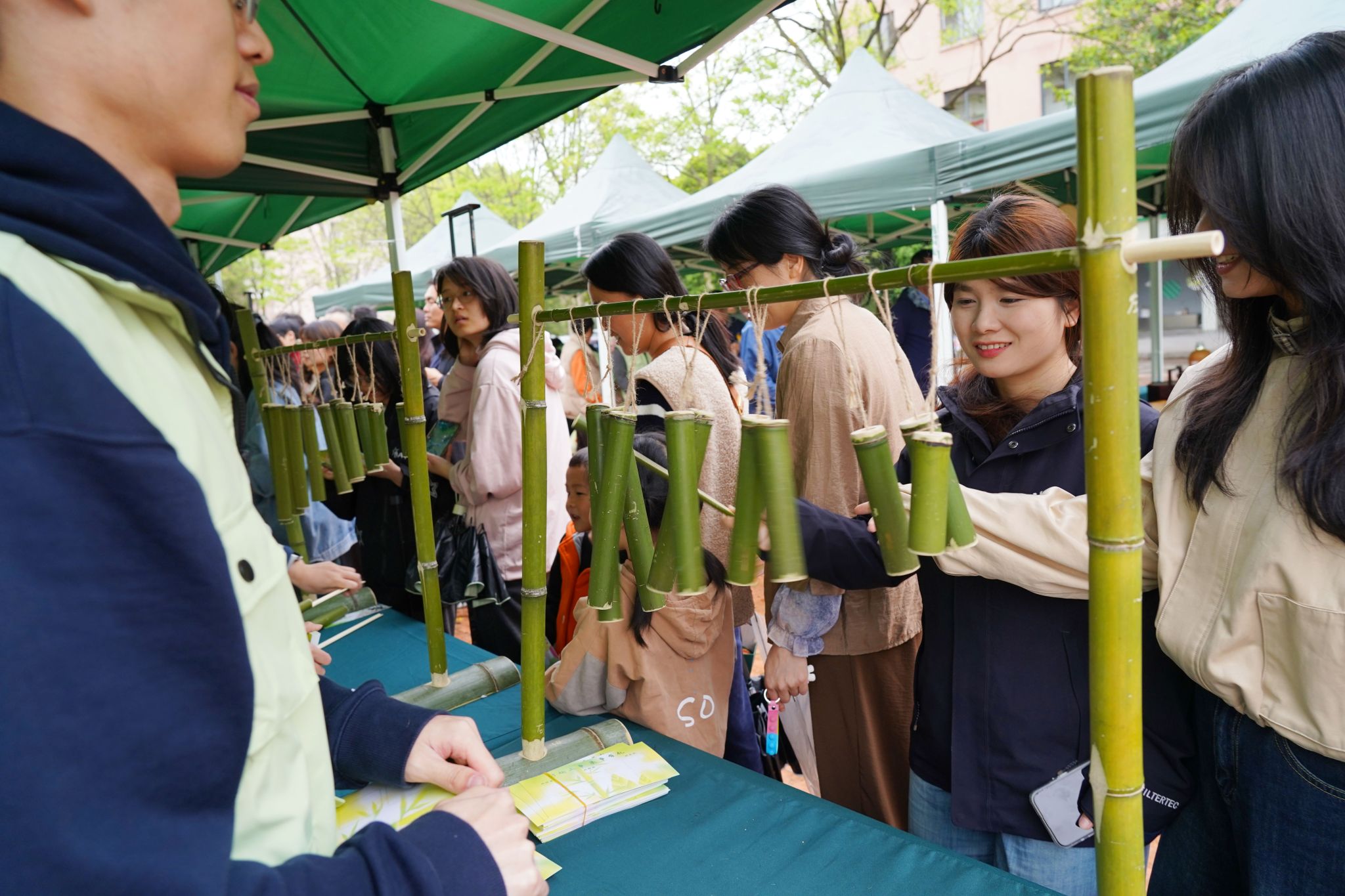 竹科技市集看點多多,展出了一系列竹科技產品、竹制品和地理標志產品,傳遞科技賦能下的綠色時尚新趨勢,展現我校扎實的竹類研究基礎,吸引了師生積極參與,切身體驗春日這場竹文化的盛宴。