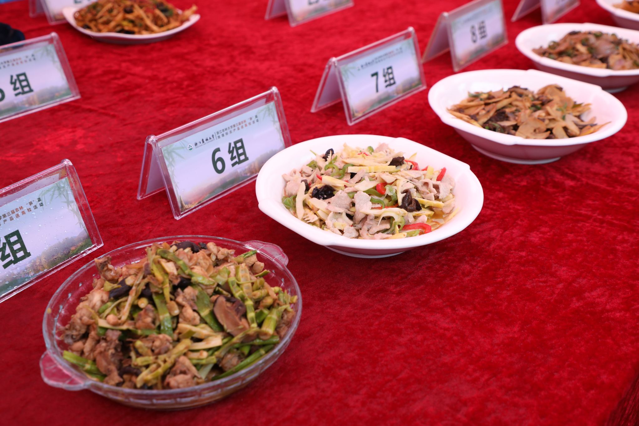 浙江師范大學、杭州電子科技大學、浙江工商大學、嘉興大學、湖州師范學院等五所高校代表、各食堂廚師以及美食檔口,展示了東坡金錢筍、蝦湯花膠驚雷筍、宋韻傳——山河匯、八寶菱筍合璧、飛英春意宴江南等竹筍菜肴,供現場師生免費品嘗。