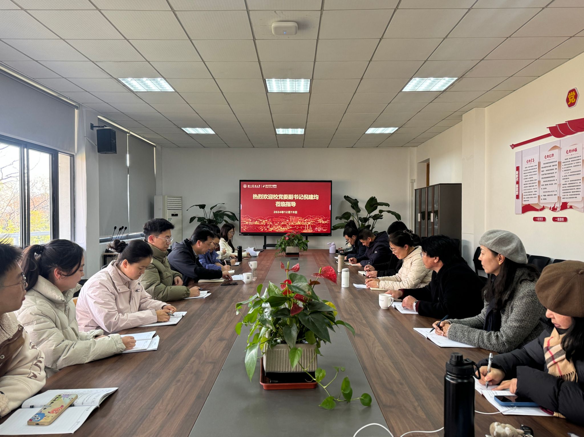 倪建均對兩個黨支部的建設(shè)成效給予肯定,圍繞黨建融業(yè)務(wù)、黨建凝人心、黨建促發(fā)展、安全與發(fā)展四個方面對支部建設(shè)提出要求。一是黨建與業(yè)務(wù)相融合,要充分發(fā)揮科技特派員優(yōu)勢,實現(xiàn)黨建與業(yè)務(wù)深度融合,打造藝術(shù)黨建專屬品牌;二是黨建與師生發(fā)展相融合,發(fā)揮“幸福‘藝’家人”教工文化品牌作用,加強關(guān)心關(guān)懷,營造良好工作氛圍,不斷增強師生凝聚力;三是黨建與人才培養(yǎng)相融合,教師黨員要充分發(fā)揮模范帶頭作用,樹立良好師德師風(fēng),做到招生培養(yǎng)就業(yè)一體化,促進學(xué)科專業(yè)良性發(fā)展;四是黨建與學(xué)院發(fā)展、學(xué)院安全相融合,做好師生安全、心理安全、生命安全等,及時防范化解矛盾風(fēng)險,牢牢守住安全穩(wěn)定底線。