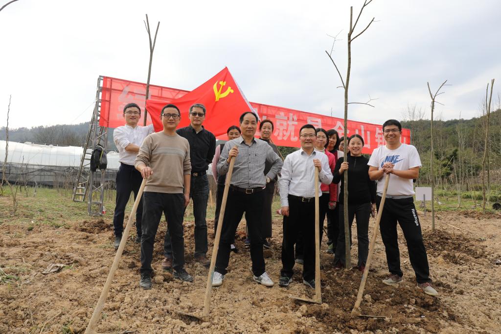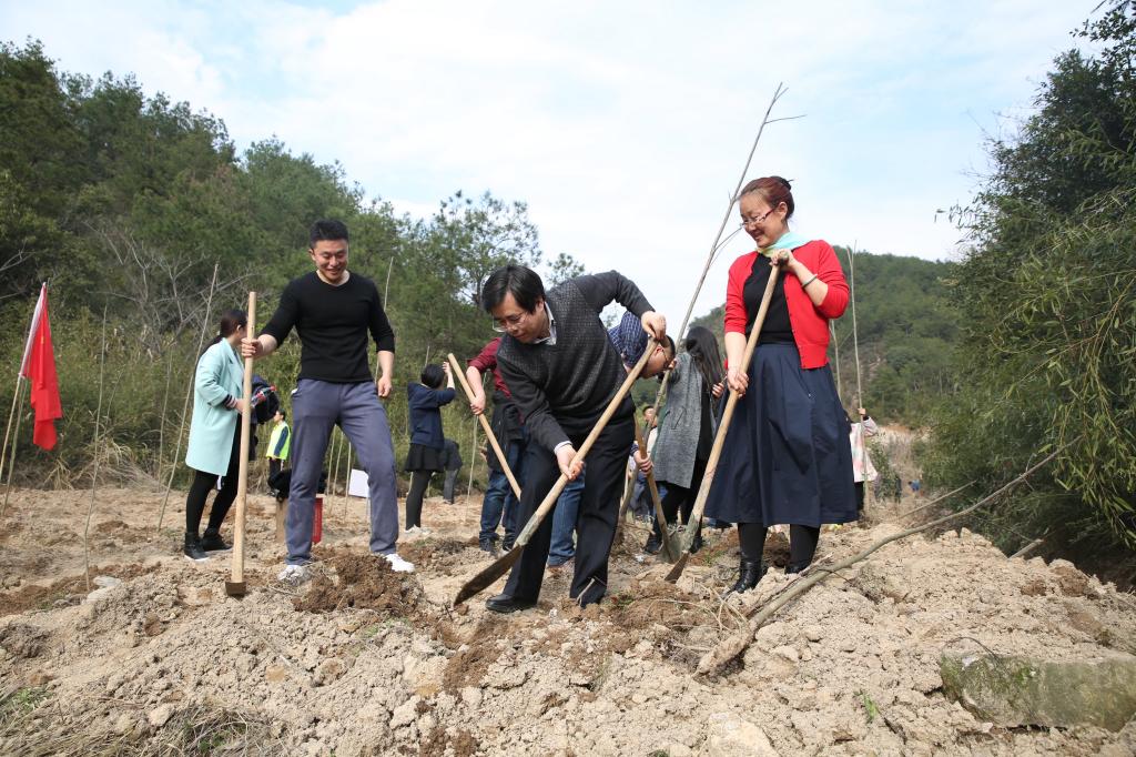 校黨政班子成員周國模、應(yīng)義斌、史永安、王自勇、金佩華、沈希、胡祖吉、童曉暉等與師生代表、消防官兵一起,在東湖校區(qū)學(xué)生公寓B9東北側(cè)添種一片新綠。大家揮鍬鏟土,扶苗填坑,踏土夯苗……,不到2小時(shí),近千株天臺(tái)鵝耳櫪、細(xì)果秤錘樹、美國山核桃、華臻等成排而立。