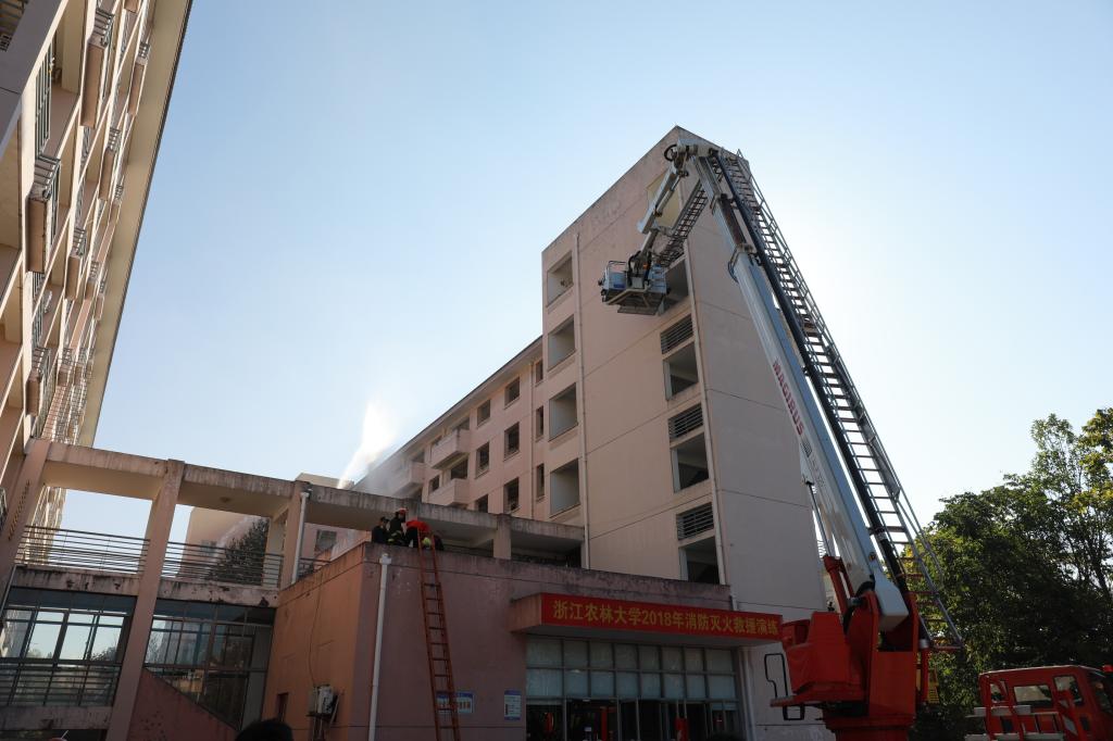 本次演練由校綜治委、臨安區(qū)消安委主辦。臨安區(qū)消防官兵、浙江農(nóng)林大學(xué)微型消防站成員、后勤宿管員、志愿消防隊(duì)員、各學(xué)院消防責(zé)任人及師生代表共計(jì)500余人參加了活動(dòng)。