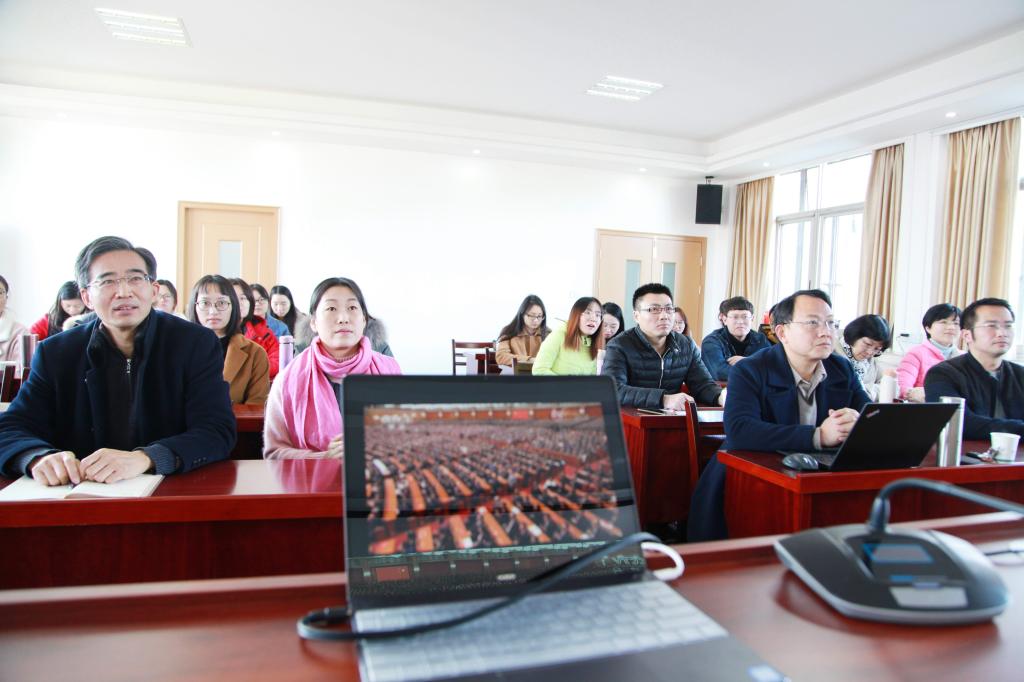 根據學校黨委統一部署,全校師生員工紛紛通過電視、網絡、新媒體等各種形式,認真收聽收看慶祝改革開放40周年大會盛況。校黨政班子成員在行政樓第一會議室集體收看;各級黨委(總支)、直支,各部門、學院(部)設立了數十個分會場,在會議室、黨員活動室、辦公室、教工之家、教室等場地組織師生收聽收看;不少學生還在學校圖書館、食堂、寢室等場所收聽收看大會直播。