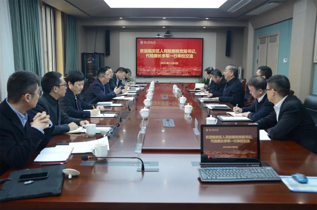 11月8日上午,杭州市臨安區人民檢察院黨組書記、代檢察長李軍攜院班子成員一行走訪全國人大代表、浙江農林大學黨委書記沈滿洪。黨辦校辦、文法學院相關負責人參加座談。