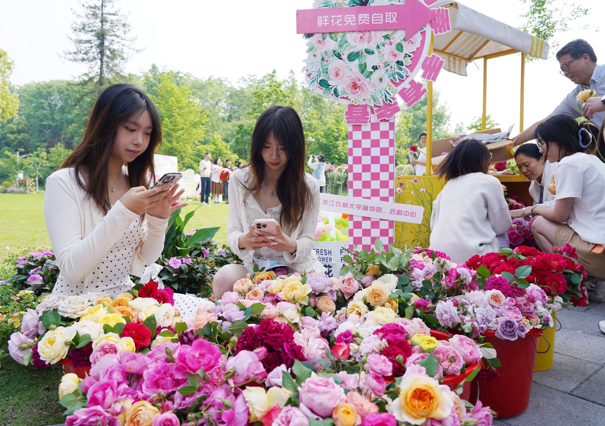 4月29日上午,浙江農(nóng)林大學(xué)東湖校區(qū)的月季園里十分熱鬧,該校后勤人員將修剪下來的數(shù)千支各色月季花免費送給廣大師生和市民,提前祝各位勞動者節(jié)日快樂。