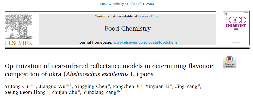 2023年3月16日, Food Chemistry(影響因子9.231/中科院一區top)在線發表了浙江農林大學園藝科學學院十字花科蔬菜團隊題為“Optimization of near-infrared reflectance models in determining flavonoid composition of okra (Abelmoschus esculentusL.) pods”的研究論文。